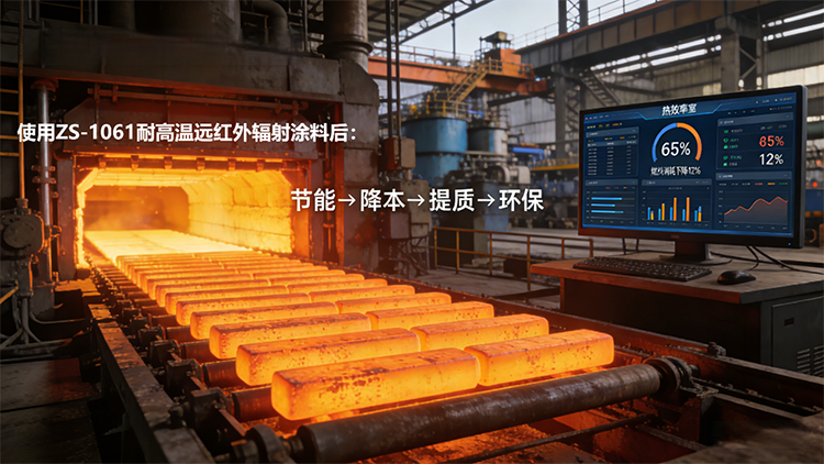 ZS-1061耐高温远红外辐射涂料已在多家钢厂的加热炉改造项目中得到成功应用,其节能效果与经济效益得到充分验证。在湖北某钢厂的改造案例显示,步进加热炉使用ZS-1061耐高温远红外辐射涂料后,步进加热炉的加热周期缩短10%,生产效率显著提升,同时燃料燃烧更充分,CO₂和NOx排放量减少12%,既实现了降本增效,又达成了环保减排目标,为企业绿色转型提供了有力支撑。