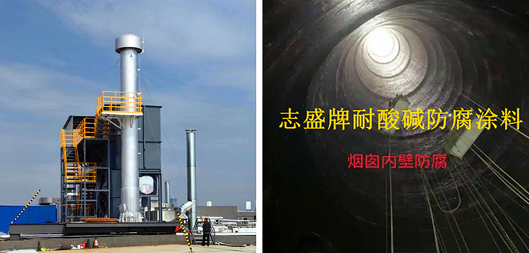 北京志盛威华ZS-1034耐酸碱防腐涂料可以两者兼具,可以耐温300℃,同时还能耐住高浓度酸碱溶液的腐蚀。ZS-1034附着力强,不易剥落,确保烟囱内壁长期完好!